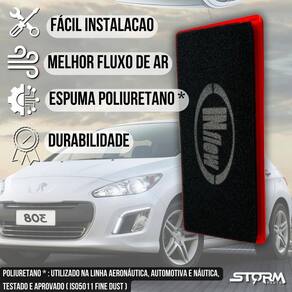 Filtro ar inflow peugeot 308 motor 1.6 thp turbo 2012 a 2015 Características: - desenhado para melhorar a eficiência do veículo; - não descartável lavável e 100% reciclável; - vida útil de 2 anos ou 60.000km; - redução da emissão veicular; - redução na quantidade de trocas de filtro de ar convencional de papel ecologicamente correto ; - espuma poliuretano performance de filtro ar esportivo ; - não sofre com ação de umidade e chuva; - óleo utilizado: óleo mineral vaselina líquida neutra - modelo urbano, podendo ser utilizado em ruas de terra com manutenção antecipada. Na utilização por longos períodos em estradas não pavimentadas, as condições de limpeza do filtro devem ser avaliadas a cada 5 mil km.