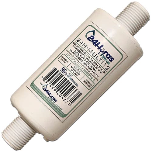 Filtro Compatível Igatu 731 Rosca 1/2 Multiuso 60l/h Pressão Filtro 24H-MULTI12 Compatível Igatu 731 Rosca 1/2 Multiuso 60l/h P/ap Por Pressão, Purificador de Água Universal. - Filtro Universal com Roscas de 1/2 na entrada e saída. - Pequeno: Cabe em qualquer lugar, de baixo da pia, etc. - Fácil adaptação em qualquer ponto de água, bebedouro, torneira, máquina de lavar, máquina de café, máquina de gelo, etc. - Pode ser como pré filtro de outro purificador, maximizando a eficiência da filtragem. - Longa duração: Filtro deve ser trocado de 6 a 6 meses. - O filtro elimina: Cloro, Gostos, Cheiros, Partículas Sólidas e ajuda a Elevar o pH. As marcas e produtos citados e ilustrados são propriedades de seus respectivos fabricantes e aparecem apenas para demonstrar a compatibilidade deste produto. --------------------------------------------------------------------------- Marca: 24 Horas Filtros Eficiência da retenção de partículas: Classe III Eficiência da redução de Cloro livre: Aprovado Eficácia Anti-Microbiana 96%: Aprovado Produto de acordo com a norma ABNT NBT 16098:2012. Elemento filtrando destinado ao uso em água que atenda a portaria N 2.914 do Ministério da Saúde. Marca: Não Informado
