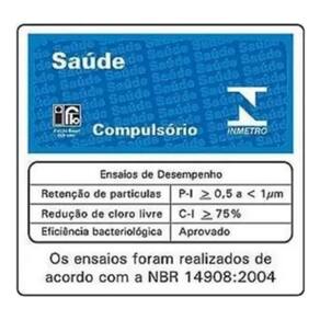 Fabricante/Marca do refil: WFS Eficiência da retenção de partículas: Classe III Eficiência da redução de Cloro livre: Aprovado Eficácia Ante Microbiana: Aprovado (eficiência bacteriológica: não se aplica)