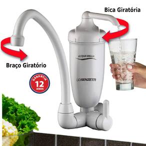 Acqua Bella - Purificador com Torneira ParedeO Purificador com Registro é para quem prefere utilizar o purificador separadamente da torneira.Essa associação - purificador com torneira - permite que você escolha entre lavar a louça ou utilizar água purificada para beber, preparar sucos, cafés, chás, ou ainda, lavar verduras e frutas.Troca de RefilA troca do refil é recomendada após 2.000 litros de água consumida ou 6 meses em média de uso, não havendo necessidade do uso de ferramentas ou da presença de um técnico. 12 anos de garantiaExceto para peças que apresentam desgaste natural do uso como: anéis de vedação, mecanismo de acionamento, o copo e o refil, terão garantia legal de 3 meses.Marca Lorenzetti