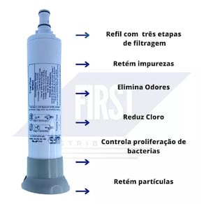 O filtro de água tem a função de filtrar impurezas sólidas e partículas suspensas como barro e areia. Ele também auxilia na redução do cloro, inibindo o desenvolvimento de bactérias e eliminando possíveis odores e sabores.
