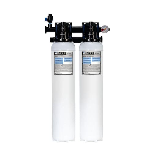 Projetado para aplicações de alto volume usando uma mistura única de carbono catalítico de casca de coco avaliado em 75.000 galões cada para um total combinado de 150.000 galões para reduzir o sabor e odor do cloro para bebidas quentes e frias consistentes e de excelente sabor, água quente e gelo