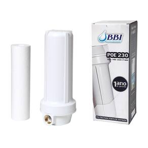 Filtro para entrada de residências, caixas dágua ou cavaletes BBI POE230Descritivo técnico:Marca: BBI FiltraçãoInstalação: Ponto de Entrada POE - Altura: 9 3/4 - Conexões: 3/4 Rosca Metálica - Pressão de Operação: Máxima 588 kPa 6,0 bar / Mínima 19,6 kPa 0,2 bar - Temperatura de Operação: Máxima 50 C / Mínima 1C- Dimensões do Produto: 118 x 118 x 300mm- Vazão Nominal: 1.200 litros / hora- Classe de Retenção de Partículas: Classe D De 15 a 30 micra 20 MICRA- Extraíveis: Aplicável- Eficiência na redução de cloro livre, eficiência bacteriológica e controle de nível microbiológico: Não Aplicáveis.- Composição Básica: Carcaça em Polipropileno / Elemento Filtrante em Polipropileno- Modelo do Elemento Filtrante: REP POE230 ou PP10/20B.Características: remove sólidos e sedimentos suspensos na água. Evita obstruções de válvulas e registros, entupimento dos bicos do chuveiro e reduz as incrustações na tubulação. Aplicações: pontos de entrada de rede, cavalete, caixas dágua, máquinas de lavar. Ideal para casas, restaurantes, escolas, hotéis, entre outros. Também indicado como pré-filtração para outras aplicações.Benefícios: - Retém sólidos e sedimentos suspensos na água.- Evita obstruções de válvulas e registros, entupimento dos bicos do chuveiro e reduz as incrustações na tubulação.- Reduz a frequência de limpeza da caixa dágua.- Fácil instalação e manutenção.- Água limpa em toda casa.- Possui elemento filtrante de polipropileno atóxico. Sua formação rígida evita a formação de caminhos viciosos da água. Alta eficiência até o fim da vida útil do elemento.- Evita constantes manutenções nas caixas dágua e cisternas.- Aumenta a vida útil de equipamentos hidráulicos.- Manutenção fácil e prática.Com água limpa, a tubulação fica protegida contra as corrosões provocadas pelo depósito da sujeira, além de evitar o entupimento de válvulas e outros equipamentos. Caso seja necessária uma maior vazão, instale os filtros em paralelo. Instale também após bombas dágua.Modelos compatíveis: FIT POE 9,3/4, Acqua 230, Acqua 230RH, Hidro Filter ECO, Filtro POE 9.3/4 BR Filter Flux, Poliaqua 300, Filtro para Caixa dÁgua FORTLEV, Filtro para Cavalete e Caixa dÁgua Branco 9.3/4 Equation, Filtro de Água Ponto de Entrada Acqualimp, Filtro 3M Aqualar Aquatotal, Filtro 3M Aqualar Aquatotal, Filtro de Água Bakof Tec.