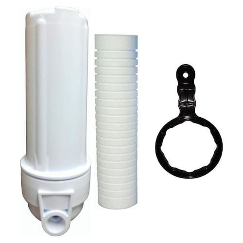 Filtro residencial para instalação no ponto de entrada caixa d'água ou cavalete para a retenção de sujeira ou partículas sólidas como areia, barro e demais sedimentos suspensos na água.