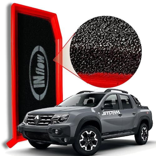 Filtro de ar esportivo inflow renault oroch 1.6 2015 a 2022 Características: - desenhado para melhorar a eficiência do veículo; - não descartável lavável e 100% reciclável; - vida útil de 2 anos ou 60.000km; - redução da emissão veicular; - redução na quantidade de trocas de filtro de ar convencional de papel ecologicamente correto ; - espuma poliuretano performance de filtro ar esportivo ; - não sofre com ação de umidade e chuva; - óleo utilizado: óleo mineral vaselina líquida neutra - modelo urbano, podendo ser utilizado em ruas de terra com manutenção antecipada. Na utilização por longos períodos em estradas não pavimentadas, as condições de limpeza do filtro devem ser avaliadas a cada 5 mil km.