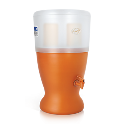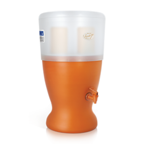 O filtro Veneza tem um design moderno e sóbrio que combina um recipiente plástico resistente na parte superior com a tradicional base de argila, que conserva a água fresca e natural.