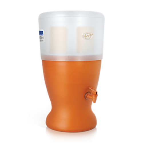 O filtro Veneza tem um design moderno e sóbrio que combina um recipiente plástico resistente na parte superior com a tradicional base de argila, que conserva a água fresca e natural.