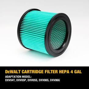 DEWALT Filtro DEWALT HEPA 4 galões - Design universal: filtro de cartucho HEPA de substituição, adequado para aspiradores de pó molhado/seco de 4 galões, compatível com aspiradores de loja úmida/seca DXV04T, DXV05P, DXV05S, DXV08S, DXV06G - FILTRAÇÃO PODEROSA: O design plissado exclusivo supera as mangas e bolsas tradicionais dos modelos mais antigos, proporcionando mais área de superfície para melhorar o fluxo de ar e reduzir o entupimento, melhora a qualidade do ar de forma eficaz, coleta partículas de até 0,3 mícron com 99,97% de eficiência - LAVÁVEL E REUTILIZÁVEL: O filtro é feito de material lavável, que pode limpar a poeira repetidas vezes e reduzir muito o custo do uso. Lave suavemente o filtro com água e deixe secar completamente ao ar livre antes de reinstalá-lo para uso - Instalação simples: este filtro aspirador de pó pode ser instalado em segundos. Basta tirar o filtro mais antigo e empurrar o novo - O que você recebe: 1 filtro de cartucho DEWALT DXVC4003
