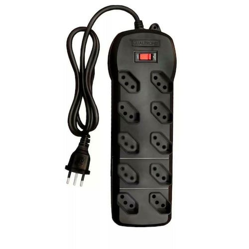 Características Técnicas: Comprimento do Cabo de Energia : 1,20 m Quantidade de Tomadas : 10 tomadas Produto : Protetor Elétrico Tensão Elétrica : Bivolt Marca : Qualitronix Quantidade de Pólos : 3 pólo(s) Tipos de Pólos : 2+Terra Possui Protetor : Sim Tonalidade : Preto