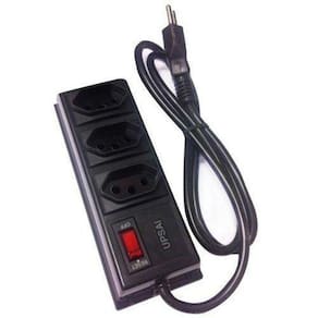 Mantenha sua rede elétrica organizada e protegida contra curto-circuitos com o Filtro de Linha 3 Tomadas Bivolt Transversal Preto FL3 - UPSAI.