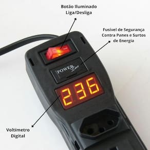 FILTRO DE LINHA C/ 3 TOMADAS E VOLTÍMETRO DIGITAL
