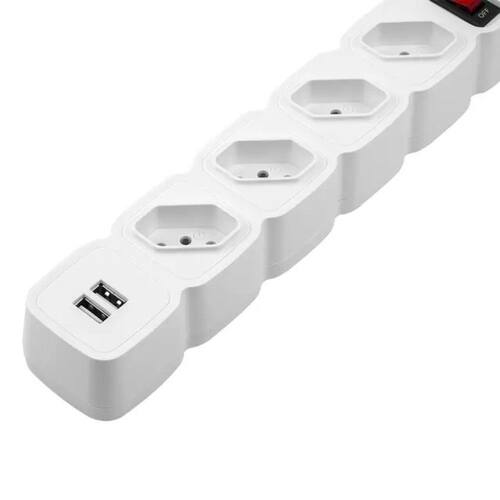 Conectividade! Equipado com varistor contra surtos de tensão e uma chave inteligente tipo disjuntor -circuit breaker-, o filtro de linha protege seus aparelhos contra curto-circuito e sobrecarga, tenha até 4 tomadas para poder conectar, tendo a segurança e a durabilidade dos equipamentos conectados. Tenha até 2 dispositivos conectados via USB, deixando ainda mais versátil sua utilização.