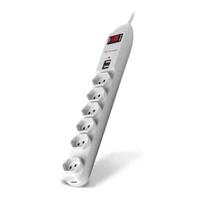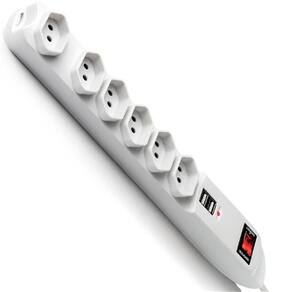Características: - Régua extensora novo padrão brasileiro - Duas entradas usb extras - 6 tomadas tripolares 2p+t - Interruptor ligar/desligar - Fúsivel de proteção - Anti chamas - Cor principal: Branco