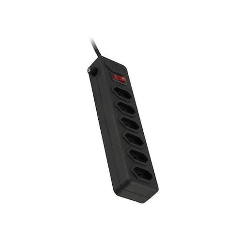 - protege computadores, aparelhos de fax, impressoras, entre outros - 6 entradas de energia (3 pinos) - tomada de saída de 3 pinos (novo padrão brasileiro) - fusível de segurança - extensão do cabo: 1,2m - bivolt - botão liga/desliga com led - energia dissipada: 85 joules - corrente máxima: 10a