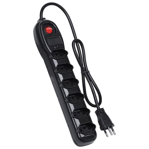 DescriçãoPrecisa ligar vários aparelho e tem só uma tomada? O filtro de linha Vinik é uma solução para quem tem vários aparelhos juntos, como: computador, monitor, caixa de som, impressora, modem, switch ou na sala, para TV, home theater, DVD, receptor de TV e dispõe de apenas uma tomada para ligar tudo isso.Além da possibilidade de 06 tomadas, o filtro ainda possui fusível de 10A, para que possa ajudar a proteger seu aparelho contra uma possível oscilação de energia.Possui também botão ON/OFF e conectores com o padrão brasileiro de três pinos, de acordo com a norma NBR 14136.Dados técnicos6 Tomadas tripolar com Novo padrão Brasileiro (NBR 14136);Fusível: 10A;Corrente máxima: 10A;Entradas Bivolt: 127/220V;Possui proteção contra sobre tensão;Tensão máxima: 250V~;Certificação: Cabo certificado conforme NBR NM 247-5;Plug e tomada certificados conforme NBR 14136 e NBR NM 60884-1;Cor: Preto;Construção:Condutor: Cobre Nu / PVC;Tomada: Injetada em polipropileno com terminais em latão;Plug: Injetado em PVC com terminais em latão;Cabo: 80 cm