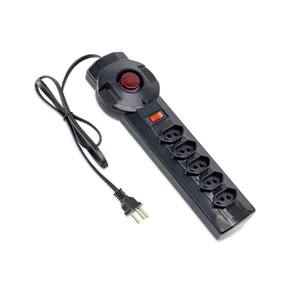 - Marca: Forceline; - Tensão / Potência: 127/1270W e 220V/2200W; - Corrente Máxima: 10A ; - 5 tomadas; - Comprimento do Cabo: 1,0 m; - Cabo: PP - 3x0,75mm ; - Cor: Preto; - Gabinete: Plástico ABS; - Fixação: Com furos para fixação. Pode ser fixado na horizontal ou vertical; - Chave: Disjuntor Rearmável 10A com indicador luminoso de funcionamento; - Proteção: Sobretensão e Atenua surtos de tensão provenientes de raios e anomalias da rede elétrica, até 125 joules (10/1000s) de energia ; - Garantia: 12 meses junto ao fabricante.