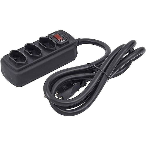 - Chassi: metálico com pintura eletrostática, espaçamento padrão entre tomadas com abas de fixação nas laterais - Tomadas: Na posição diagonal 45, em termoplástico de engenharia com partes metálicas em liga de cobre, em conformidade com padrão brasileiro NBR 14.136 - Cabo: PP Tripolar 3 x 0,75mm x 1,0m conforme NBR 13.249 e NBR 14.136 - Porta fusível: 02 fusíveis sendo 1-6A - 220V / 1-10A - 127 V - LED: 02 LED's luminosos indicadores de funcionamento 01 LED aceso indica corrente de 127V e 02 LED's acesos indicam corrent de 220V - Tensão de Entrada/Saída: Bivolt 127V/220V - Frequência: 50/60 Hz - Protetor contra sobrecarga: SIM - Potência Máxima do conjunto: 1.500W - Corrente máxima do conjunto: 10A - Cabo, Plug, Tomadas e Porta Fusíveis Normatizados - Tomadas: 3 - Cor: Preto - Metragem Cabo: 1,0 metros - Marca: CTC - Modelo: FLR3