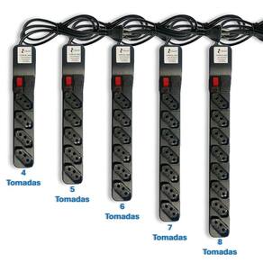 Número de Tomadas: 8Comprimento do Cabo: 1 metroMaterial: ABS de alta resistênciaCor: PretoDesign: Transversal, otimizando espaçoCertificação: Cabo com selo do INMETROFusíveis: Acompanha 2 fusíveisModelos disponíveis: