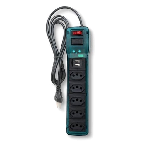 Características: - 05 tomadas - 02 portas USB - Saída total: 1A; - Bivolt 127/220V; - Cabo de 1 metro, - Cabo em conformidade com a norma técnica NBR 14.136 da ABNT e certificado pelo INMETRO.