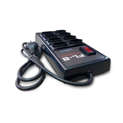 Filtro de linha com protetor de tensão 8 Tomadas Com Fio Fabricados em gabinete plástico injetado de alto impacto possuem design moderno e proporcionam proteção aos equipamentos eletroeletrônicos em geral, estão disponíveis em diversas configurações de tomadas. Aplicações: - Residência - Eletroeletrônicos - Informática - Áudio e vídeo - Eletrodomésticos - Vídeo Game Aplicações Típicas - Informática - Periféricos - Telefonia - Segurança - Aparelhos eletro-eletrôicos em geral. ATENÇÃO: A tensão de entrada do protetor é igual à tensão de saída. O protetor não transforma a tensão de 220V para 115V ou vice-versa. Destaques: - Bivolt - Chave L/D com indicação luminosa - Elementos de filtragem Características Técnicas: - Potência Máxima: 1150VA/W em 115V ou 2200VA/W em 220V - Tensão: Bivolt entra 115V e sai 115V ou entra 220V e sai 220V - Corrente máxima: 10 A por tomada ou 10 A no conjunto - Freqência: 50 / 60 Hz - Conexões: Tomadas 10A e Cabo de alimentação com plugue / 1,20m apróx. padrão NBR 14136 - Gabinete: Plástico ABS : 12 meses por defeito de fabricação Características Tensão: Bivolt entra 115V e sai 115V ou entra 220V e sai 220V Corrente máxima: 10 A por tomada ou 10 A no conjunto Conexões: 10A e com plugue padrão NBR 14136 Comprimentos do cabo: 1,20m aprox : 12 meses por defeito de fabricação Ean: 7898172116796