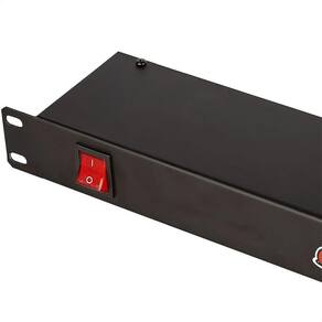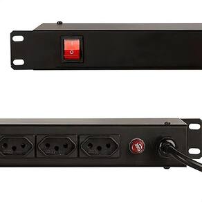 Na parte frontal, possui interruptor com LED de funcionamento e plugue fêmea de tomada padrão. Com alça lateral para instalação em rack padrão 19 polegadas .