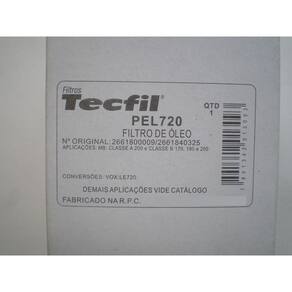 Filtro de óleo Tecfil PEL720 Código (PN) da montadora: Mercedes Benz A2661800109 e Mercedes Benz A2661840325.