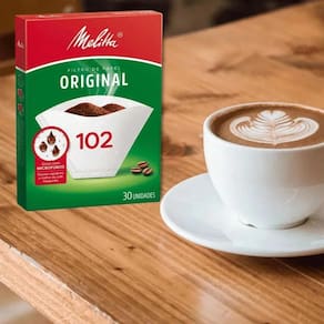 Formato 102, ideal para coadores e cafeteiras de mesmo tamanho Papel de alta resistência, não rompe com facilidade Estrutura porosa que retém o pó, mas deixa passar os sabores Produto biodegradável e descartável Embalagem econômica com 30 unidades Escolha de quem entende de café