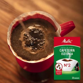 Papel 100% fibras naturais Coação uniforme Ideal para cafeteiras elétricas Embalagem com 30 unidades Preparo limpo e prático Produto com tradição e confiança Melitta