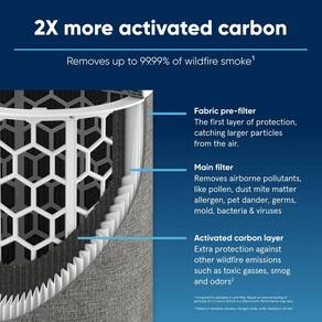 BLUEAIR Filtro de substituição genuíno Blue Pure 311i Max SmokeBlock, extrcarbono, captura 99,99% da fumaça Wildfire, serve para purificador de ar Blue Pure 311i Max - Melhor ferramenta contra incêndios florestais: 2x mais carvão ativado remove 99,99% da fumaça de incêndios florestais junto com proteção extra contra outras emissões de incêndios florestais, como gases tóxicos, fumaça e odores - Compatível com Blue Pure 311i Max: filtro de substituição Blueair 311i Max SmokeBlock compatível com purificador de ar Blue Pure 311i Max - Filtros feitos para durar: usando uma entrada de ar de 360 graus e até 4 vezes a área de superfície do filtro, o filtro SmokeBlock 311i Max Pure genuíno dura em média 6 meses; otimizando o fluxo de ar e o desempenho ao longo do tempo - Remove até 0,1 mícron: o filtro de partículas remove partículas transportadas pelo ar, como pólen, pelos de animais, bactérias, mofo, vírus e poeira do seu ambiente interno - Retém odores domésticos: além das emissões de incêndios florestais, a malha de carbono ativa também retém odores domésticos, fumaça, produtos químicos e compostos orgânicos voláteis (COV) - Substituição automática do filtro: Assine e economize até 10% em filtros entregues automaticamente quando a substituição for necessária; recomendamos substituir seu filtro a cada 6 meses quando utilizado 24 horas por dia - BLUEAIR Os purificadores de ar são testados de forma independente quanto ao desempenho e segurança, zero ozônio: AHAM Verifide para CADR; padrões de segurança de ozônio certificados pela CARB; parceiro de educação confiável da British Health Professional Academy