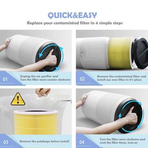 Filtro de substituição 3 em 1 com 5 camadas, carvão ativado e tecnologia TRUE-HEPA H13. Remove 99,9% das partículas de até 0,03 mícrons.Tipo