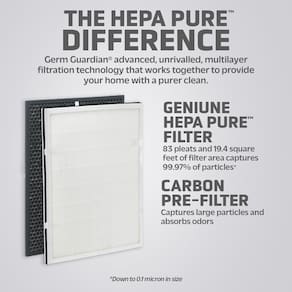 GermGuardian Filtro de substituição do purificador de ar genuíno puro H HEPA, remove 99,97% dos poluentes purificador de ar GermGuardian AC9200, FLT9200 - Filtração pura HEPA genuína – Experimente o poder da autêntica filtragem de ar HEPA PURE. Os filtros de ar HEPA genuínos GermGuardian de alta eficiência capturam 99,97% de poeira, alérgenos e partículas de fumaça de incêndio florestal até 0,1 mícron do ar. Nossos filtros genuínos prendem efetivamente pólen, bactérias nocivas e pelos de animais de estimação do ar. - Por que a HEPA PURE - Orgulhosamente fabricada na América do Norte, a HEPA Pure se destaca com sua tecnologia de filtragem multicamadas incomparável. Apoiados por rigorosos testes científicos usando laboratórios confiáveis e independentes, combinamos extensa pesquisa, materiais superiores e engenharia meticulosa para superar a concorrência. Cuidado com imitações que comprometem a qualidade e o artesanato, deixando poluentes nocivos no ar. Os filtros HEPA PURE genuínos aumentam a longevidade com menos substituições enquanto proporcionam um ar de confiança em um ambiente mais seguro, limpo e mais respirável. - Peças puras, ar puro – Filtros de substituição GermGuardian genuínos garantem ajuste certificado e máxima filtragem. Os filtros off-brand frequentemente falham nos padrões de teste HEPA, se ajustam incorretamente, reduzem a eficácia e podem causar danos ao seu purificador de ar GermGuardian Seu purificador é tão poderoso e eficaz quanto o filtro que você coloca dentro. - Reduz odores – o pré-filtro de carvão ativado retém poeira, pelos de animais de estimação e outras partículas grandes, enquanto prolonga a vida útil do filtro HEPA. O carbono tratado absorve compostos orgânicos voláteis do ar e reduz os odores de fumar, cozinhar e animais de estimação. - MODELOS DE PURIFICADOR DE AR COMPATÍVEIS: Filtro de substituição para purificador de ar GermGuardian modelo AC9200W