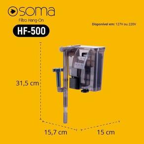 Filtro Externo Soma HF-500 500L/H - 127V Nova linha de filtros Hang-On Soma. Modelo HF-500 110V Com 8 WATTS de potência. Silencioso. Filtragem mecânica, biológica e química Vazão de 500L/H Capacidade máxima recomendada de 65 litros. Acompanha extrator de superfície.