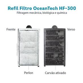 Filtro externo OceanTech HF-300 tipo cascata, hang on, para aquário de até 75L com vazão de 300 L/h Os filtros externos hang on da OceanTech linha HF, são ideais para quem busca um equipamento prático, de fácil manutenção, confiável e de ótimo custo-benefício para seu aquário. Seu sistema de filtragem contém sistemas específicos para cada etapa da filtragem: mecânica, química e biológica. : : 3 meses de do vendedor não cobre danos por mal uso. Características: HF-300 Tripla filtragem mecânica, biológica e química Elimina odores Design discreto Tampa translúcida fumê Corpo translúcido fumê Controle de fluxo Espaçador para apoio no vidro do aquário Refil: 1 Refil com perlon e carvão ativado + 1 refil biológico Fácil manutenção - partes desmontáveis Resistente Extremamente silencioso Mídias filtrantes de alta qualidade Refis de fácil Especificações técnicas: Tampa translúcida fumê Corpo translúcido fumê Controle de fluxo Espaçador Refil: 1 Refil com perlon e carvão ativado + 1 refil biológico Potência: 4W Vazão: 300 L/h Capacidade do aquário: Até 75L Tamanho do filtro sem os canos: 11,5 x 14 x 10,5 cm largura x altura x profundidade Altura total dos canos de entrada: 22 cm Tamanho da área que fica para fora do aquário: 6 cm Tamanho do fio: 1,30 m Tamanho caixa: 16,5 x 16 x 10,5 cm largura x altura x profundidade Peso: 550g Como usar e montar filtro externo para aquário: Antes de usar no aquário, passe todas as partes em água corrente Encaixe o cotovelo na bomba Conecte os canos no cotovelo Insira os refis dentro do filtro Posicione o filtro externo no vidro do aquário Coloque água dentro do filtro Após todos os passos indicados, ligue o filtro na tomada. Manutenção filtro externo para aquário: A manutenção do filtro externo OceanTech deve ser realizada uma vez por mês. Antes de iniciar a limpeza do filtro, desligue o filtro da rede elétrica e em seguida retire a água de dentro do filtro. Retire as mídias filtrantes. Passe todas as partes em água corrente, inclusive a bomba e o impeller. Não utilize produtos e materiais abrasivos. Já vem com refil Sim, as mídias já acompanham o produto. O produto é novo Obrigado pela visita e boas compras ATENÇÃO Nossas imagens e textos são registrados e com direito de uso autoral controlado e reservado a essa loja e as lojas parceiras devidamente autorizadas em contrato. Ean: 7900859282967