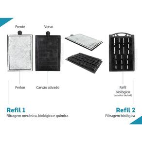 Filtro externo OceanTech HF-400 tipo cascata, hang on, com filtro biológico, para aquário de até 90L com vazão de 450 L/h Os filtros externos hang on da OceanTech linha HF, são ideais para quem busca um equipamento prático, de fácil manutenção, confiável e de ótimo custo-benefício para seu aquário. Seu sistema de filtragem contém sistemas específicos para cada etapa da filtragem: mecânica, química e biológica. : de 1 ano: 3 meses de do vendedor + 9 meses de de fábrica não cobre danos por mal uso. Características: HF-400 Tripla filtragem mecânica, biológica e química Elimina odores Design discreto Tampa translúcida fumê Corpo preto fosco Controle de fluxo Espaçador para apoio no vidro do aquário Refil: 1 Refil com perlon e carvão ativado + 1 refil biológico Fácil manutenção - partes desmontáveis Resistente Extremamente silencioso Mídias filtrantes de alta qualidade Refis de fácil Especificações técnicas: Marca: OceanTech Modelo: HF-400 Tampa translúcida fumê Corpo preto fosco Controle de fluxo Espaçador Refil: 1 Refil com perlon e carvão ativado + 1 refil biológico Potência: 6W Vazão: 450 L/h Capacidade do aquário: Até 90L Tamanho do filtro sem os canos: 15,5 x 17 x 11 cm largura x altura x profundidade Altura total dos canos de entrada: 27 cm Tamanho da área que fica para fora do aquário: 6,5 cm Tamanho do fio: 1,30 m Tamanho caixa: 16,5 x 18 x 10,5 cm largura x altura x profundidade Peso: 710g Como usar, montar e ligar filtro externo para aquário: Antes de usar no aquário, passe todas as partes em água corrente Encaixe o cotovelo na bomba Conecte os canos no cotovelo Insira os refis dentro do filtro Posicione o filtro externo no vidro do aquário Coloque água dentro do filtro Após todos os passos indicados, ligue o filtro na tomada. Manutenção filtro externo para aquário: A manutenção do filtro externo OceanTech deve ser realizada uma vez por mês. Antes de iniciar a limpeza do filtro, desligue o filtro da rede elétrica e em seguida retire a água de dentro do filtro. Retire as mídias filtrantes. Passe todas as partes em água corrente, inclusive a bomba e o impeller. Não utilize produtos e materiais abrasivos. Obrigado pela visita e boas compras ATENÇÃO Nossas imagens e textos são registrados e com direito de uso autoral controlado e reservado a essa loja e as lojas parceiras devidamente autorizadas em contrato. Ean: 7793299670438