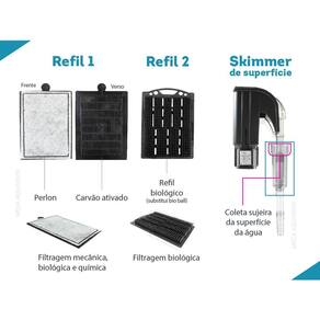 Filtro externo OceanTech HF-600 tipo cascata, hang on, com filtro biológico e skimmer de superfície, para aquário de até 150L com vazão de 650 L/h Os filtros externos hang on da OceanTech linha HF, são ideais para quem busca um equipamento prático, de fácil manutenção, confiável e de ótimo custo-benefício para seu aquário. Seu sistema de filtragem contém sistemas específicos para cada etapa da filtragem: mecânica, química e biológica. : de 1 ano: 3 meses de do vendedor + 9 meses de de fábrica não cobre danos por mau uso. Características: Oceantech HF-600 Tripla filtragem mecânica, biológica e química Elimina odores Design discreto Tampa translúcida fumê Corpo preto fosco Controle de fluxo Espaçador para apoio no vidro do aquário Refil: 1 Refil com perlon e carvão ativado + 1 refil biológico Skimmer de superfície - retira as sujeiras da superfície da água Fácil manutenção - partes desmontáveis Resistente Extremamente silencioso Mídias filtrantes de alta qualidade Refis de fácil Especificações técnicas: HF-600 Potência: 8W Vazão: 650 L/h Capacidade do aquário: Até 150L Tamanho do filtro sem os canos: 20 x 20 x 16,5 cm largura x altura x profundidade Altura total dos canos de entrada: 38 cm Tamanho da área que fica para fora do aquário: 7 cm Tamanho do fio: 1,30 m Tamanho caixa: 20,5 x 21,5 x 15,5 cm largura x altura x profundidade Peso: 1220 g Como usar, montar e ligar filtro externo para aquário: Antes de usar no aquário, passe todas as partes em água corrente Encaixe o cotovelo na bomba Conecte os canos no cotovelo Insira os refis dentro do filtro Posicione o filtro externo no vidro do aquário Coloque água dentro do filtro Após todos os passos indicados, ligue o filtro na tomada. Manutenção filtro externo para aquário: A manutenção do filtro externo OceanTech deve ser realizada uma vez por mês. Antes de iniciar a limpeza do filtro, desligue o filtro da rede elétrica e em seguida retire a água de dentro do filtro. Retire as mídias filtrantes. Passe todas as partes em água corrente, inclusive a bomba e o impeller. Não utilize produtos e materiais abrasivos. Obrigado pela visita e boas compras ATENÇÃO Nossas imagens e textos são registrados e com direito de uso autoral controlado e reservado a essa loja e as lojas parceiras devidamente autorizadas em contrato.