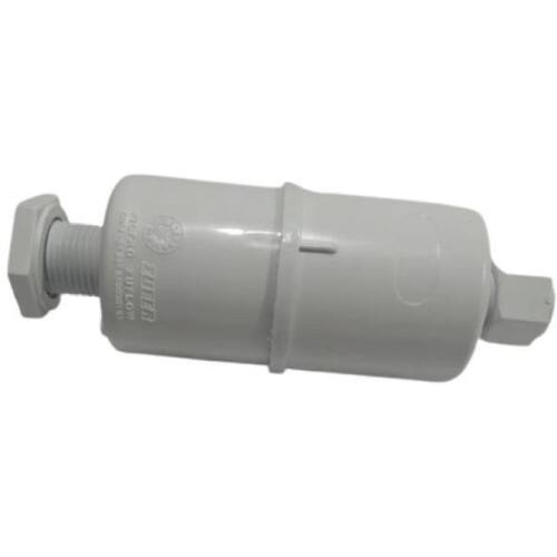 Filtro interno para bebedouro de pressão. Rosca de entrada 1/2" BSP e saída 3/8" BSP. Porca para mangueira de 1/4". Vazão de 54 litros/hora. Carvão ativado NDC2. Elemento interno de polietileno.Tipo