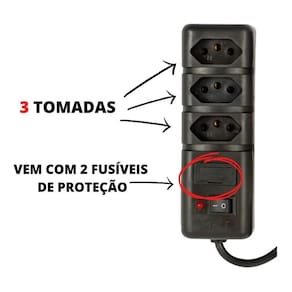 Filtro de linha com fusível 3 tomadas 2p+t cabo 1,12 metros. Filtro de linha com fusível de proteção. Cabo 1,12m Modelo: 3 tomadas / ABS: Preto Bivolt: pode ser utilizado em 110/127 e 220 volts / Tipo de tomada: NBR14136 10A Aplicação: eletrônicos, smartphones, tablets, laptops, impressoras, computadores, videogames entre muitos outros aparelhos. IItens Inclusos: 1 filtro de linha Kahel com corpo plástico (ABS) com 3 tomadas Marca: Não Informado