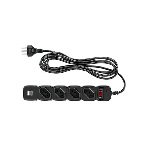 DETALHES: - Tensão nominal: 100-240Vac Bivolt automático - Corrente máxima: 10A - Potência máxima de operação: 1270W 127V e 2200W 220V - Frequência da rede elétrica: 50-60Hz - Conexão de entrada: Plugue 2P+T NB 14136 10A - Comprimento do cabo de força: 1 metro - Chave inteligente com indicador luminoso de funcionamento - Tecnologia de proteção: Varistor contra surtos de tensão - Chave inteligente tipo disjuntor circuit breaker , proteção contra curto-circuito e sobrecarga - Máxima absorção de energia: 125Jaules - Garantia: 1 ano - Freqência de operação: 50-60Hz - Cor: Preto - Comprimento do produto: 10,4 cm - Largura do produto: 4,4 cm - Altura do produto: 36,2 cm - Peso do produto: 0,270 kg - Numero de tomadas: