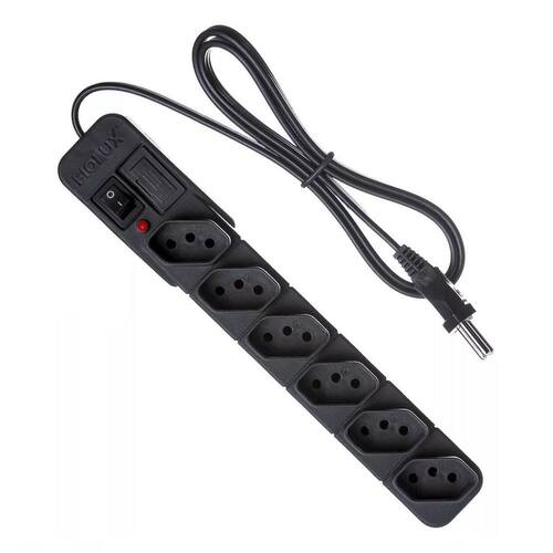 Filtro de Linha Régua 6 Tomadas com Proteção Cabo 1 Metro 10A Preto Fiolux
