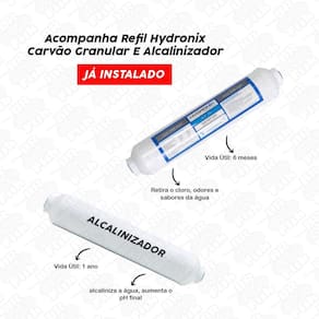 Filtro osmose reversa para consumo humano + alcalinizador + declorador t33 hydronix já instalado uso residencial /água para beber