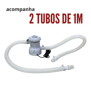 Itens inclusos: 1 Bomba Filtrante para Piscina, 2 Mangueiras, 2 Pré Filtro para Mangueira, 4 Braçadeiras , 1 Manual (português)