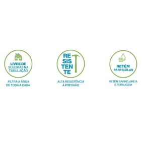 Filtro de água para instalação em pontos de entrada, como cavaletes ou hidrômetros. Reduz entupimentos e evita limpezas frequentes na caixa d'água, melhorando o desempenho dos equipamentos hidráulicos e gerando economia.Bica móvel