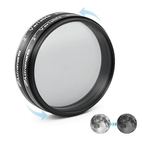 Filtro polarizante variável Astromania 2" Este filtro de polarização variável age como um interruptor de dimmer para o seu telescópio, tonificando o brilho da Lua ou planetas para um nível confortável e revelando mais detalhes da superfície. Muitas vezes você encontra diferenças consideráveis no brilho de detalhes em objetos do Sistema Solar. Isto é particularmente perceptível quando se observa: - Crateras lunares que estão perto do terminador lunar - manchas solares e faculae. Cuidado: apenas para ser utilizado em associação com um filtro solar apropriado na frente do seu telescópio! - Detalhes sobre planetas A irradiação de regiões mais brilhantes impede que você distingue detalhes finos. Os filtros de polarização variáveis permitem ajustar seletivamente o nível de escurecimento. Capacidade: Conexão (ao telescópio): 2" Tipo: Filtro de polarização Material de montagem: Alumínio Cor: cinza neutro Transmissão: 1 (variável de 1% a 40%) Quadro: 2” - Filtros de polarização variáveis são feitos de dois filtros individuais de vidro de alta qualidade. O efeito de escurecimento variável é produzido girando o filtro inferior em relação ao superior. E reduz o brilho sem alterar significativamente a cor dos objetos para uma melhor percepção de detalhes e para um melhor conforto de visualização. - Este filtro de polarização variável tem um suporte de material de alumínio, o que dificulta a quebra. - Ele ajuda você a ajustar o brilho de forma eficaz. O filtro de polarização variável permite ajuste seletivo de brilho, que é útil para observação terrestre e objetos do sistema solar. - Estes filtros têm uma grande variedade de efetividade. A transmissão de luz de filtros polarizadores está entre 1% e 40%. Esse controle ajustável é altamente desejável para observação lunar, pois o brilho da lua varia com sua fase e também com a abertura e ampliação do telescópio que você está usando. Também é essencial para visualizar a lua em horas de dia. - Ajusta-se a todos os óculos de 5 cm com a linha de filtro padrão.