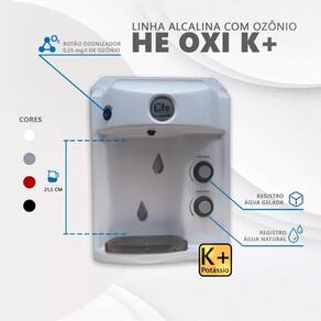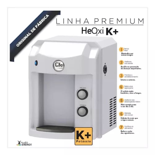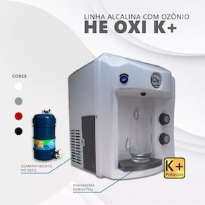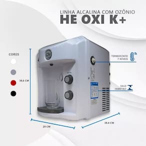 Água super alcalina, ionizada e com ozônio. Adição de minerais e potássio.Função retrolavagem