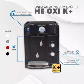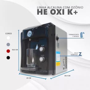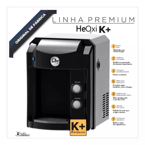 Água super alcalina, ionizada e com ozônio. Adição de minerais e potássio.Função retrolavagem