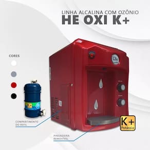 Água super alcalina, ionizada e com ozônio. Adição de minerais e potássio.Função retrolavagem