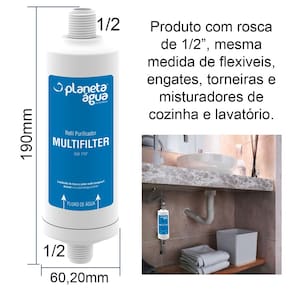 Filtro Purificador de Água Planeta Água Top Multifilter - 1137. Retenção de Partículas: Classe D (15 a 30µm). Com Redução de Cloro Livre.Bica móvel
