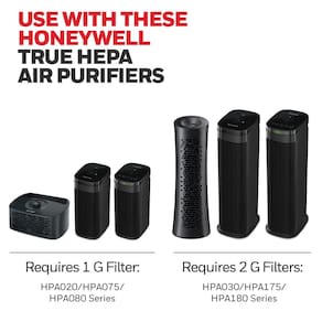 Honeywell Filtro purificador de ar HEPA G, pacote com 2 para as séries HPA030/HPA080 e HPA180. Filtro de ar alérgeno aerotransportado visa incêndios florestais/fumaça, pólen, pelos de animais de