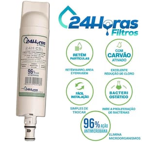 Filtro Refil Consul Compatível Purificador CPC 30 35 36 31 34 CIX01 CIX06 Filtro Refil 24H-CSL compatível com os Purificadores de Água Consul Compatível com todos os modelos, linha Bem Estar, Facilite, entre outras, sendo: Os que usam o refil CIX01 / CIX01AONA CPC30 - CPC35 - CPC36 Os que usam o refil CIX06 / CIX06AONA CPC31 - CPB34 - Troca Rápida e Fácil manual passo a passo é enviado junto . - Filtro deve ser trocado de 6 a 9 meses, conforme manual do aparelho. - O filtro elimina: Cloro, Gostos, Cheiros, Partículas Sólidas e ajuda a Elevar o pH. - Acompanha 1 bateria, Utilizado nos modelos de água natural, não elétricos. As marcas e produtos citados e ilustrados são propriedades de seus respectivos fabricantes e aparecem apenas para demonstrar a compatibilidade deste produto. --------------------------------------------------------------------------- Marca: 24 Horas Filtros Eficiência da retenção de partículas: Classe III Eficiência da redução de Cloro livre: Aprovado Eficácia Anti-Microbiana 96%: Aprovado Produto de acordo com a norma ABNT NBT 16098:2012. Elemento filtrando destinado ao uso em água que atenda a portaria N 2.914 do Ministério da Saúde. Marca: Não Informado Ean: 7892449404289