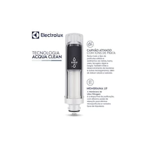 O Filtro/Refil de Água para Purificador Electrolux 80000702 garante água pura e preserva sua saúde. Com a exclusiva Tecnologia Acqua Clean possui nota máxima na retenção de partículas pelo Inmetro (Classe A). Alto poder de purificação e controle microbiológico e na redução de cloro livre.